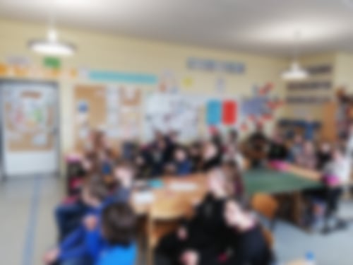Herr Kelly besuchte die 4a und 4b. Begeistert hörten die Kinder den Liedern zu.